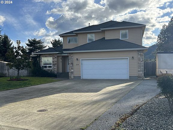 Boasting a great quiet cul-de-sac location less than 1 mile from public access to the North Umpqua River, and a low county tax rate, this custom home features a large yard, an inviting entry, a lovely kitchen with Maple cabinets, granite counters, two spacious pantry cabinets with pull-out shelves, an eating bar and more. The den/office could also be a formal dining room. A gas fireplace adorns the living room. The primary bedroom suite includes a large bedroom, a walk-in closet, and a bathroom with dual sinks, a shower and a jetted tub. The three upstairs bedrooms are generously sized. There is room to park and RV or other toys, along with three structures for storage, and a 12x16 workshop with heating, AC and 100 amp service. The home's furnace and AC unit were replaced in the spring of 2023.The fiber cement siding will last for years with minimal maintenance. An in-ground sprinkler system keeps the entire yard green through the summer and the back yard, featuring a raised bed and roomy patio, has a lot of room for great outdoor living. The sale includes enough wood to replace most, if not all of the dog-eared fencing along the back property line. The seller's current AHS home warranty is assumable and is paid monthly. The sellers are making all minor repairs they are aware of, and are offering a $10,000 flooring allowance to replace the carpeting and laminate flooring with whatever the buyer(s) would like. Come make this home yours before someone else snatches it up!