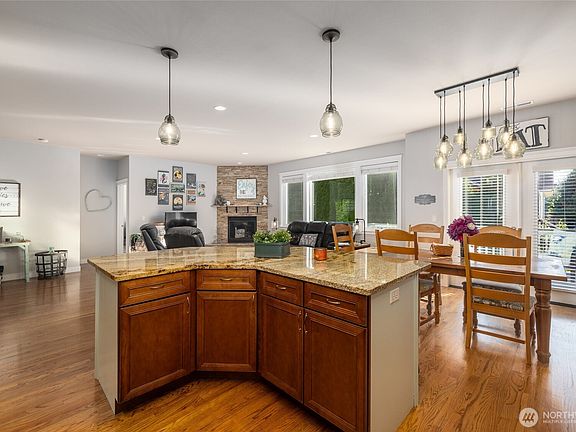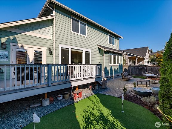 Tucked at the end of quiet lane in charming La Conner, this home has so many upgrades: hardwood & tile flooring, slab granite counters, new composite deck & paver patio. Light-filled great rm w/oak floors, natural gas fpl w/stone surround, spacious kitchen w/ss appliances, gas range, huge island w/seating. Home office off tiled front entry. Laundry w/utility sink & main floor 3/4 bath w/tile floors. Main floor primary suite w/ensuite 5piece bath w/tile floor, double vanity, soaking tub, shower w/tile surround, walk-in-closet. Upstairs are two generous guest rms, full bathroom w/tile floor, & a big, finished bonus room. Fenced yard w/water feature, putting green. Attached garage. Walkable to shops, dining, marina, boardwalk. Not leased land!