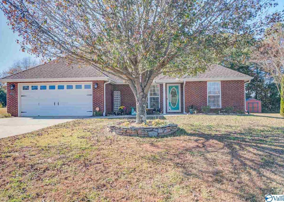 Beautiful, full brick 3 bedroom, 2 bath home w/two car garage on over a half acre of land in a peaceful, country setting. Family room has a tray ceiling, vent less gas log fireplace⦠perfect for a cold winter day! You will love the French door style pocket doors between family room & dining room & wood blinds throughout! Great floor plan has an isolated master bedroom with an updated master bath with a soaking tub, double vanity & separate shower. Enjoy the huge back yard with a covered patio setup for entertaining. 10x12 Storage shed! Super convenient with easy commute to Redstone Arsenal, Research Park, UAH and shopping.
