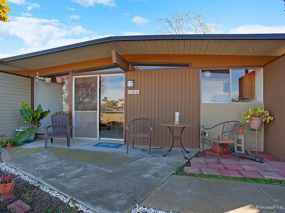Live the San Clemente Lifestyle! Chris Abel designed Mid-Century Modern by the Sea! Beautiful wood beam ceilings in the living room/dining, kitchen and bedrooms. Excellent floor plan with kitchen overlooking living room and patio. Light, bright and airy with skylight in bathroom, kitchen with built-ins, laundry area inside, plush carpets, plus front and rear patios! Enjoy the beautiful views from the living room, kitchen and front patio.The single detached garage is owned and maintained by the HOA and there is one additional parking space plus guest parking. Perfect for "Beach Close" full time living or vacation home. The highly sought after community of Vista Pacific Del Gado is located within minutes to the the San Clemente Pier, Doheny Beach, Dana Point Harbor, San Clemente Train Station, New San Clemente Outlets, shopping & restrauants. The association amenities include swimming pool and clubhouse. Hurry, this won't last long!