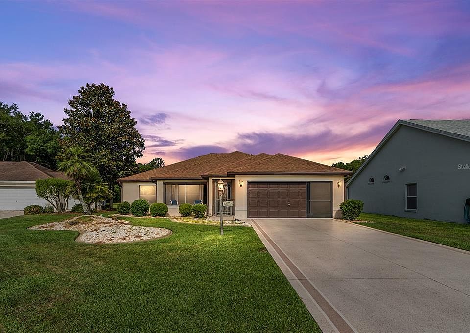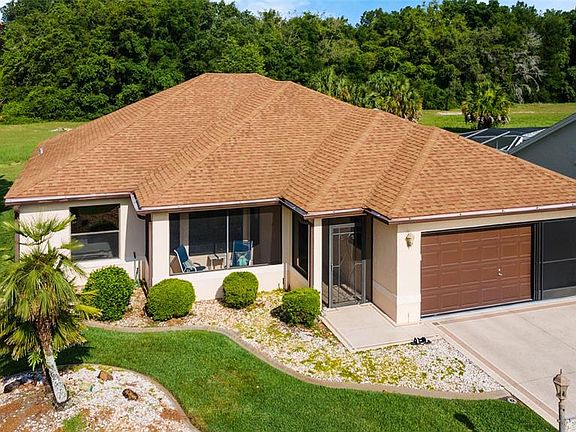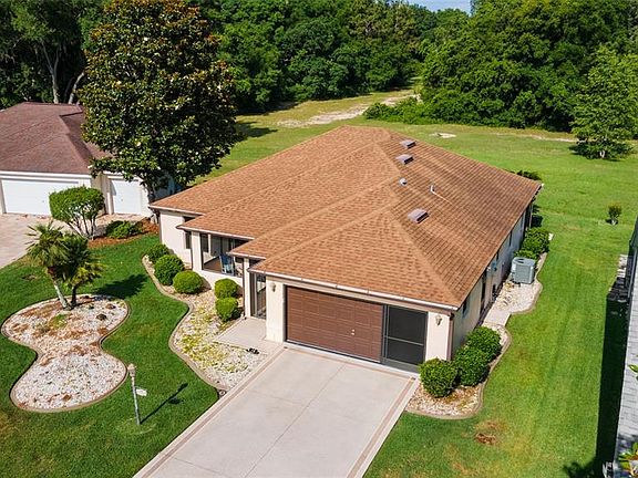 Public Tax Records reflect 400 sq ft less! SELLERS MOTIVATED SO BRING ALL OFFERS! A DREAM COME TRUE! This CULDESAC home offers PRIVACY with a BEAUTIFUL VIEW OF TREES, WOODS AND WILDLIFE IN THE REAR, IS IN A PERFECT LOCATION, HAS ROOM FOR A SMALL POOL, AND NO BOND OR MAINTENANCE FEE! This BEAUTIFULLY SET 3/2 BLOCK & STUCCO EXPANDED AND UPDATED SANTA ROSA has a 20x20 GLASS ENCLOSED GREAT ROOM W/AIR AND A PLEXI-GLASS ENCLOSED BONUS ROOM AND IS MOVE-IN READY. This BRIGHT AND SUN-FILLED home also comes with A PREPAID ONE-YEAR HOME WARRANTY (REPAIR OR REPLACE w/NO SERVICE CALL FEE)! The AMAZING features include: a LARGE setback; NEW HWH (2019); A/C (2010); ARCHITECTURAL SHINGLE ROOF (2007); PAINTED driveway/sidewalk and front porch COMPLETELY UNDER ROOF AND SCREENED-IN (180 SF); NEUTRAL PAINT throughout (2018); LARGE windows; CERAMIC TILE in entry, kitchen, dinette, both bathrooms, great room AND screened-in BONUS ROOM; carpet in main living & bedrooms; EXPANSIVE BAY WINDOW in the dining room; LARGE BEDROOMS; UPDATED bathrooms (both 2019) that include a NEW L-shaped ONYX counter-top w/2 sinks in master bath and NEW ONYX counter-top/sink in guest bathroom, tiled walk-in shower in master bath, NEW toilets in both, NEW fixtures in both, and NEW ONYX tiled walk-in shower with glass door in guest bath; LARGE master walk-in closet; BRIGHT wood kitchen cabinets with GRANITE counter-tops and bar top, NEW WHIRLPOOL STAINLESS STEEL Refrigerator, Stove, Microwave AND dishwasher (2018), NEW fixtures, Pantry and DOUBLE STAINLESS STEEL SINK; 3 sets of sliding glass doors that access the COMPLETELY TINTED GLASS ENCLOSED and CERAMIC TILED 20x20 GREAT ROOM w/CUSTOM BLINDS for privacy and light filtering; PLEXI-GLASS ENCLOSED BONUS ROOM (135 SF); INSIDE LAUNDRY w/NEW GE Washer & Dryer (2018) and built-in cabinets above; Garage has a NEW GARAGE DOOR OPENER (2020), a PAINTED floor, side access door, SLIDING GARAGE DOOR SCREENS and attic access w/pull-down stairs for extra storage! You could not ask for a more CENTRAL and CONVENIENT location since you are just a short drive by golf cart or car to 441 for all your shopping, dining and entertainment needs, Chula Vista Rec Center & Pool, La Hacienda Pool & Rec Center, Rio Grande Family Pool, an ABUNDANCE of champion and executive golf courses, and SPANISH SPRINGS OR SUMTER LANDING SQUARES for the FAMOUS nightly Village entertainment! Tax line reflects Ad Valorem AND Non-Advalorem YEARLY assessments as follows: Fire ($124), County ($2,277.81), NO BOND OR MAINTENANCE FEE! FURNITURE NEGOTIABLE!