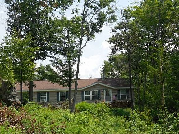 Private setting and land needs to be reclaimed without a doubt but the earlier photos show the potential and beauty to be had. Skirting needs to be reattached and some overall tlc needed. Ample supply of wood on property to supply the woodstove n the living room and keep you warm all winter. Up 3 exterior steps and you have one level living throughout. Enter into the mudroom/laundry room, open concept for the eat-in kitchen, dining and living rooms. Generous cabinet storage in the kitchen. The primary bedroom suite has the attached bath but also a den/office space for even more privacy and room to spread out. Two additional bedrooms at the opposite end of the home share a full bath. Spacious and comfortable home on nearly 16 acres would make for an easy maintenance second home or lovely primary and +/- 5 acres may be able to subdivide