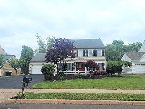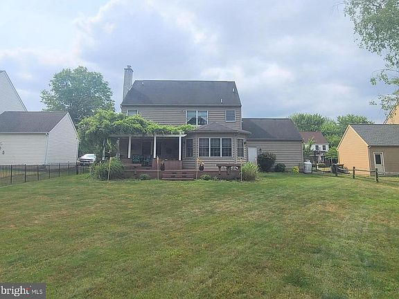 This charming four-bedroom colonial is set in a desirable neighborhood setting. The foyer welcomes you with a double door closet and a tasteful half bath. A formal dining room awaits with double French doors, perfect for a large table and hutch. On the other side, a formal living room features a window box seat and ample natural light. Hardwood floors lead to a spacious kitchen with an tasteful cabinetry, and two tiered center island with stool seating. The space opens to a sunlit breakfast room with views out to back yard. The kitchen opens to a family room that includes a cozy brick fireplace with propane insert, built-in shelving and a extended bar top, ideal for entertaining. Upstairs, the primary bedroom provided plenty of space for the larger furnishing and includes a full bath with double vanity, stall shower and soaking tub. Completing this room is a full walk-in closet. There are three additional bedrooms, each with ample closet space and a full bath with the added convenience of the laundry closet. The basement offers extra living space, including a second family room/game room, a full bath, and an office or homework room. Outside, enjoy a spacious deck overlooking a level backyard with fenced surround, shed, tasteful landscaping, and a basketball/sports court. This home is conveniently located with walking paths to the park and just a short ride to Lake Galena. Close to many other area attractions, shopping, and dining. New HVAC system, Hot water heater, and grinder pump for basement full bathroom.