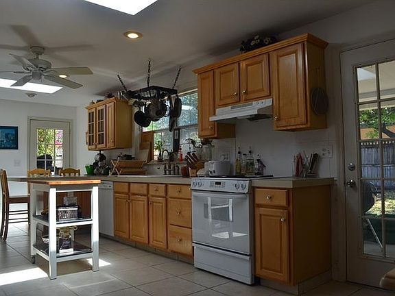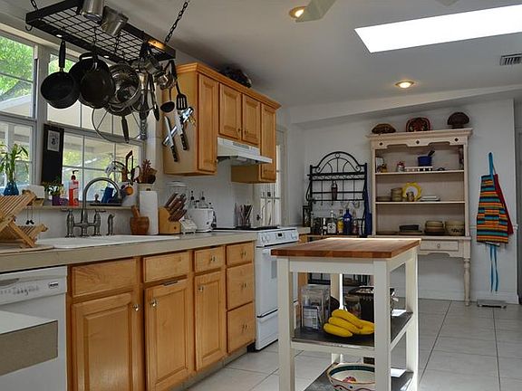 Nicely updated Mid-Century ranch in the heart of Temple Terrace featuring an oversized kitchen with breakfast bar, planning desk, center island and laundry area. Vaulted ceilings, skylights in the kitchen and baths and open floor plan in the main living area. The light filled Florida room is currently used as a home office, so is open to interpretation, with a French door opening to a 15' x 14' private covered patio area. One French door at the rear of the kitchen leads to a large covered deck area, ideal for outdoor dining and weekend projects with a 12'x11' storage/workshop area also opening to this deck. Another French door off the side of the kitchen leads to a smaller (9'x7') patio area which is the perfect barbeque area. The oversized fully fenced rear yard is sectioned for different uses with plenty of room on the east side for boat or RV storage, the rear is divided by the deck with plenty of sun filled garden and play areas. The one car garage also has a separated 18'x7' workshop area for those indoor projects. A circular drive grants easy access and plenty of room for guest parking. Metal roof installed in January of 2011, HVAC in November of 2007 and the electrical has been upgraded to 200amp service so all of the big ticket items have been taken care of leaving only the cosmetics to make this home one's own.