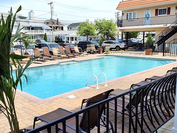 Welcome to the highly desirable city of North Wildwood! This year-round condo located at Heritage Condominiums is walking distance to the world-famous beach and boardwalk. As you approach your new condo, take note of the large pool area surrounded with plenty of seating for the family. Step inside Unit 102 to see the spacious open concept living area with hardwood flooring, crown molding, formal dining area, and full kitchen. The kitchen includes stainless steel appliances, wooden cabinetry, granite countertops, cold water filtration system for drinking water, and a window in front of the sink which offers a beautiful pool view. Enjoy the rarely offered 2 nice size bedrooms with plenty of closet space. The full bathroom offers porcelain floor tiling, vanity with storage and bottom shelf, and a stand up shower with floor to ceiling tiles, a built-in accent niche, and frosted sliding glass doors. Also enjoy the outdoor patio area with grills for the perfect ambiance, laundry area which is free for all owners, storage area, bike rack area, and assigned off-street parking. The condo fee also includes insurance, water, sewer, and trash. Rentals are allowed with a two week minimum. Time to schedule a showing to your new beach getaway!