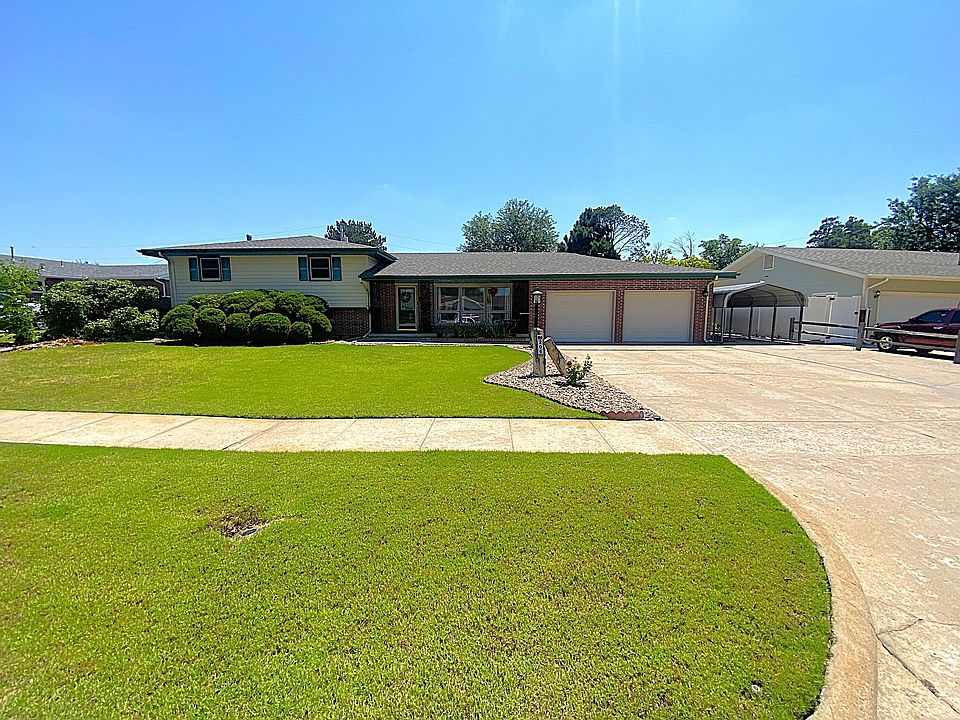 This spacious split-level home offers the room you’ve been looking for!! On the main floor you will appreciate the open spaces. With a large living room flooded with natural light, kitchen featuring custom cabinets, and a family room with wood burning fireplace, there is room to spread out and entertain!! The second floor holds 3 large bedrooms and sizeable bathroom. Downstairs you will find one more bedroom, additional bathroom, and a recreation room with a wood burning fireplace. Out back is where the fun begins!! The inground swimming pool and covered patio are perfect for these hot summer days. New pool liner in 2023. Other amenities include an oversized heated 2 car garage, carport, and maintenance free siding. Call Brent Hines with Bel Air Realty for your personal tour today!! 785-656-0961.
