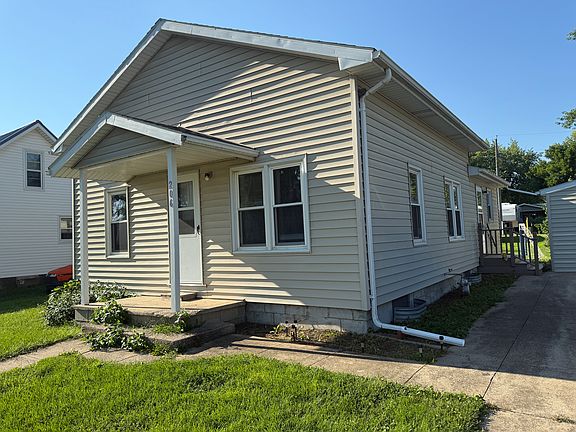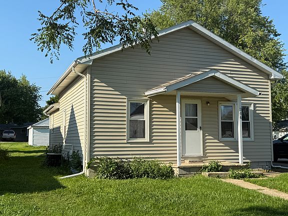 House features two bedrooms, living room, dining area, kitchen, basement, and a large backyard.