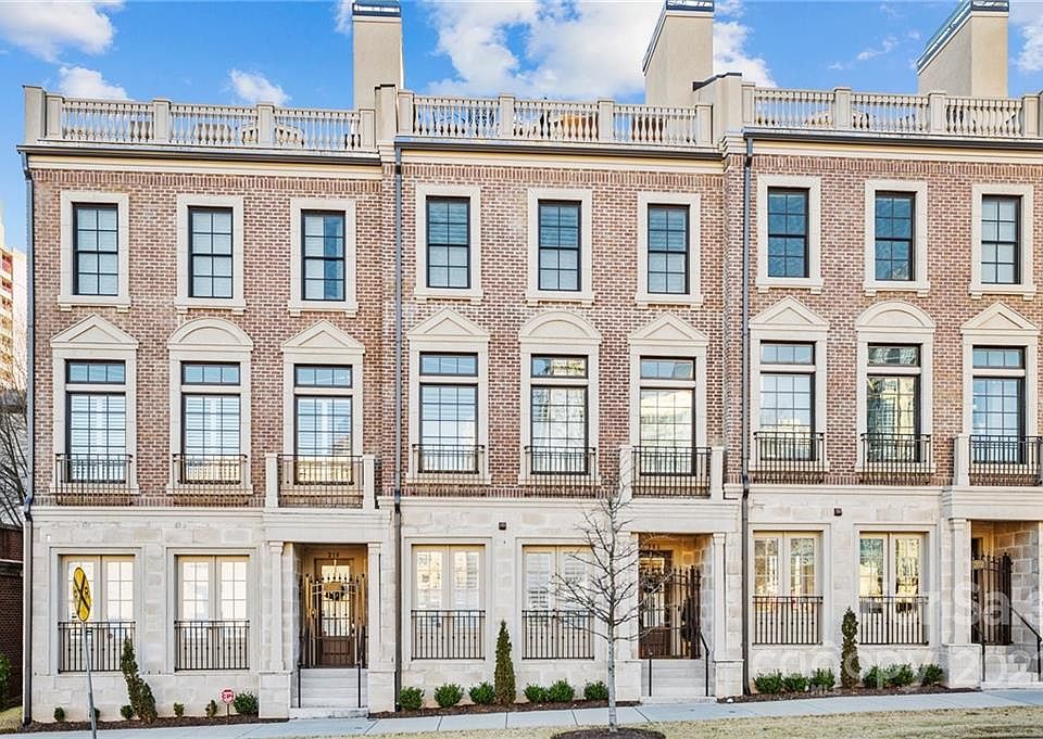 Immerse in elegance & style in this beautiful Charlotte townhome set within the lively South End district! Upon entering, you are greeted w neutral tones, wood flooring throughout & nearly 12' ceilings. Take your personal elevator to discover multiple windows spilling abundant sunlight across the open entertainment spaces featuring a fireplace. Designer kitchen isequipped with s/s appliances, handsome cabinetry, and a multi-seater island. Chic fans, tray ceilings, and tastefully tiled ensuites await in your comfortable private retreats, topped by the primary suite’s own fireplace, generous walk-in closet, and a lavish bath. The rooftop terrace inspires blissful gatherings w sweeping skyline views and a 2nd kitchenette for convenience. Extra features incl a 2 car (side by side) attached garage + EV charge port. With only 11 units in the development, this rare gem enjoys close access to a gated community pocket park, low HOA fees. Also listed for LEASE $8000/month MLS #3925642