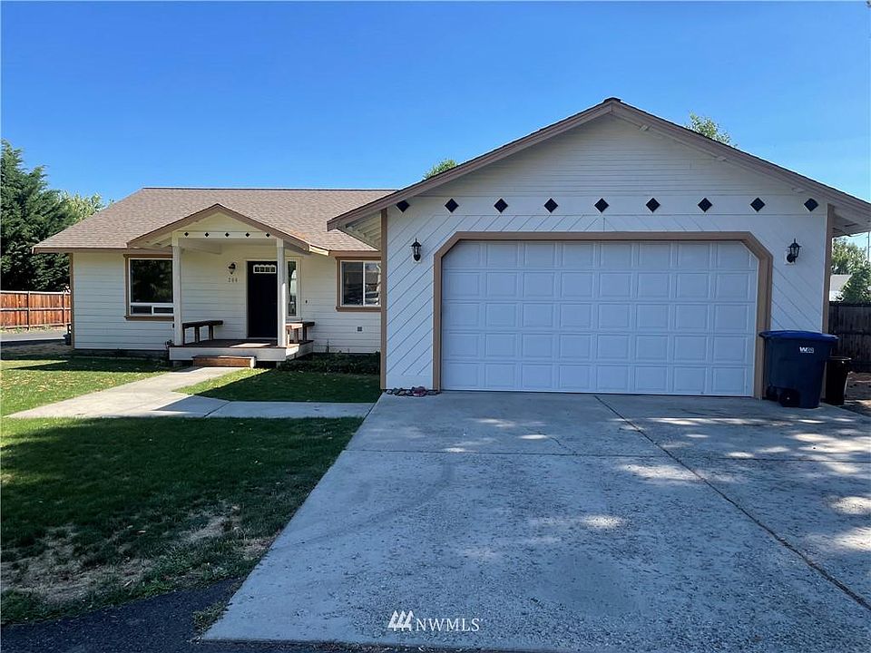 Located off the main street in a quiet setting is this 3 bed, 2 bath home with office/flex room. The home has an open floor plan with gas fireplace and large windows. The master suite has a large soaking tub with tile surround, shower and walk in closet. The bedrooms all have ceiling fans and lights in the closets. The kitchen has loads of storage a pantry and large eating bar. The over size garage has shelving and the tank less water heater and furnace are located there. The large back yard is fully fenced and there is room to park an RV on the side of the house.