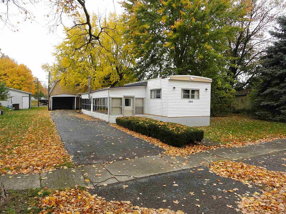 Very clean home with low utility costs & taxes. Enclosed porch has wood burner, eat in kitchen, 1 1/2 BA being sold "as is". 24x24 pole barn has loft workshop over & 2 garage doors. 20x13 garage with enclosed lean to. Very nice quiet lot with trees. Off street parking and alley access. Window AC to stay. Includes washer & dryer. This property has 2 lots and has been well maintained and cared for.