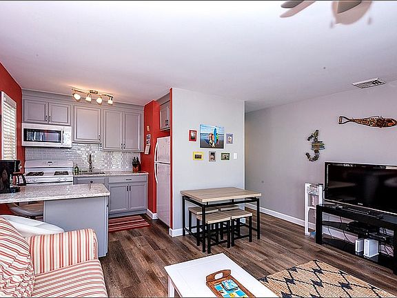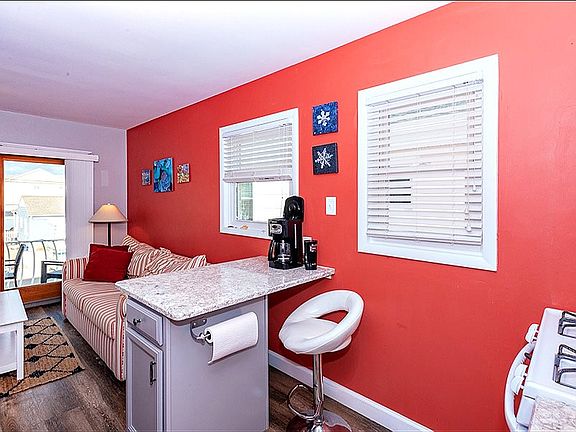 Completely remodeled second floor 2 bedroom 1 bath condo in Wildwood Crest! Spacious and bright living area with open concept family room, kitchen and dining area. Unit has been upgraded recently with wall to wall engineered vinyl planking floors, paint, and furniture which is included in the sale! Kitchen has brand new granite countertops and island, cabinets, track lighting, & subway tile backsplash. Full Bath has new vanity, tile work and tub! Spacious bedrooms with ceiling fans, and plenty of space in closets, and window dressings. Enjoy summer evenings on your large front porch with friendly neighbors and strong condo association. Off street parking and additional storage is the icing on the cake! Location is strategic to Sunset Lake with new dock and the beach is fantastic!!