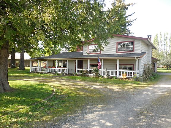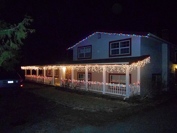 Spacious mid-county home on .64 acres with very large 2 car garage. Convenient circular driveway and covered wrap-around deck and porch. Home has wood stoves in both the good sized living room and in the family room. Country style kitchen and dining with butcher block island in kitchen & wood flooring. This is a tri-level design with 3 bedrooms up and a family room, one bedroom and nice sized utility room down. Newer gas forced air furnace. Spacious patio, with a flat yard and two shed structures. Surrounded by evergreens and it feels like you live in the park! Roses, Azaleas, and a vegetable garden plot in the back.