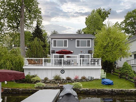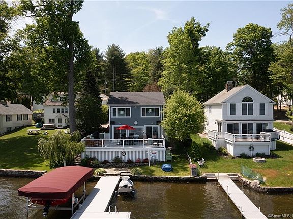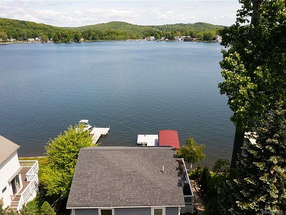 **Turn Key** Highland Lake Direct Waterfront! Spectacular easterly views and access to the beautiful clean waters of Highland Lake, a 444-acre boating lake, in the town of Winchester, Litchfield County CT. COMPLETELY REBUILT in 2014, this LOW MAINTENANCE beautiful lake home boasts 3 beds and 1.5 baths with an amazing EXPANSIVE DECK! Beautiful vinyl plank wood floors, bead board and moldings through out. Gorgeous kitchen with granite countertops, stainless steel appliances, hood and two built in ovens. OPEN FLOOR PLAN with wide open views across the lake. Heated with the latest technology in electric resistance glass panel heaters. and electric baseboards. A tankless hot water heater with never-ending hot water! 3 generous sized bedrooms with a luxurious shower in the full bath occupy the second floor. Primary bedroom looks east over the lake. Plenty of closet space and a full basement for all of your storage needs. Worry free living in this totally secure home built with a camera and alarm systems and keyless entry. Spacious wrap around no maintenance deck with glass railings to preserve the view. Entertainment made easy with outdoor sound system and exterior lighting. No maintenance powered dock with lights. Parking for at least 5-6 cars. This YEAR ROUND RETREAT comes TURN KEY with all interior and exterior furnishings including TVs and sound system, grills, fire pits, 2 kayaks and 1 paddle board. Conveniently located 2.5 Hours to Boston/NYC, 45 Minutes to Hartford.