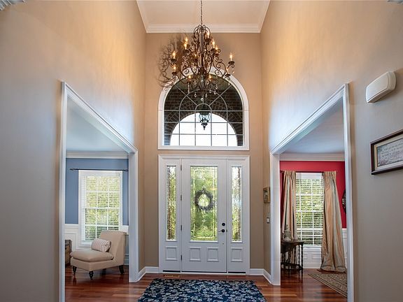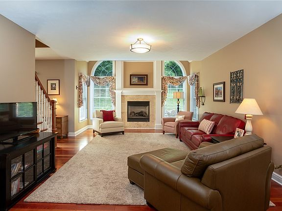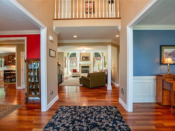 Elegant pristine custom brick 5-BR, 5-BA home nestled on 1.14 acres. Welcomed by a grand covered porch w/exquisite lead glass door & meticulously manicured landscaping. Inside, grandeur continues w/ 2-story foyer, Brazilian cherry flooring gracing MainLevel. Lg eat-in Kitchen boasts cherry cab/CT backsplash/SS appliances/island/pantry complete this culinary haven. FR is highlighted by vaulted gas marble-framed FP, flanked w/Palladian windows. LR/Den/DR exude elegance w/crown molding & wainscoting. Retreat to owner's suite featuring tray ceilings/ensuite bath w/tiled shower stall/jetted tub/lg walk-in closet. 4 add’l BRs boast tray ceilings, w/2 ensuite baths & 2 sharing Jack-n-Jill bath. Entertainment awaits in fin walk-out GR, complete w/kitchen; exercise room, 9-ft ceilings & abundant storage, plumbed for add’l bath. Attic storage. Outside, a serene private patio w/fire pit. This property epitomizes luxury living, elegance, functionality, &tranquility in every detail. P-R School Dist