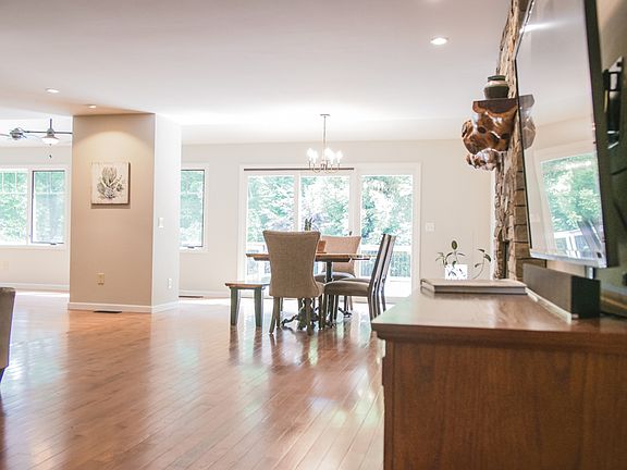 Located on a quiet cul de sac with a resort like back yard with low chlorine o zone system in grd pool w/waterfall & 2 deck jets, remote control pool & landscape lighting. This 4br/2.5bth w/wraparound porch, hardwood floors on lower & upper master. Has tons of upgrades in kitchen w/fullsized fridge & freezer, gas stovetop w/ss hood, convection wall oven & microwave, wht washed wood cabinets, granite counters & glass tile bk splash. Pella casement windows & tripleslider opens to deck wired & ready for your hot tub. Rinnai tankless water heater, 3 zone HVAC. It's a beauty!