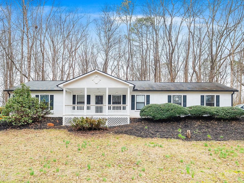 NO HOA!!! Amazing location!! Renovated Ranch Home on a Private 1.1 Acre Lot! New paint throughout, new siding and new driveway! Stunning engineered hardwood floors. Updated kitchen with vaulted ceiling, custom cabinets, quartz countertops, stainless steel appliances, new fixtures, custom lighting, tiled floor, breakfast bar and breakfast area. Vaulted great room with ceiling fan and sliding glass doors. Separate dining room/den with vaulted ceiling and chandelier. Primary suite with his & her closets. En-suite primary bath with custom dual vanity, tiled floor & shower, and custom fixtures. Two spacious secondary bedrooms and full bath complete the home. Greet the day on the rocking chair front porch. Enjoy evening on the rear patio overlooking the private backyard. Storage shed is great for all your tools and toys. Large private lot is perfect for boats and RV's. NO HOA! EXCELLENT SCHOOLS!
