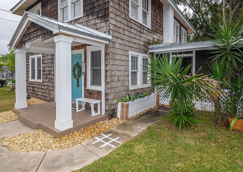 Welcome to this charming 1920s home bursting with potential! The inviting living room features an original fireplace, leading seamlessly to a cozy dining area and a separate kitchen. Downstairs, two bedrooms and a main bathroom with a walk-in shower, along with a convenient indoor laundry room. Nestled on a sprawling corner lot adorned with majestic oak trees, this residence offers ample space for parking RVs, boats, or cars. Enjoy relaxation on the vast side porch overlooking the expansive corner lot, complete with built-in planters and a fire pit area for outdoor gatherings. With no HOA restrictions, this property offers freedom and flexibility. This 5-bedroom, 2-bathroom, 2-story home spanning 1956 SF of living space exudes charm and character. Built in 1920, the property features removed popcorn ceilings, replaced HVAC compressors, new toilets, kitchen sink, ceiling fans, and outdoor lights. Original hardwood floors upstairs and new flooring downstairs add to the appeal. Modern conveniences include a new water heater installed in 10/21, plumbing updated in 9/2021, and electrical updated in 2003, along with a new Metal Roof installed in 2023 and beautiful cedar shake siding.