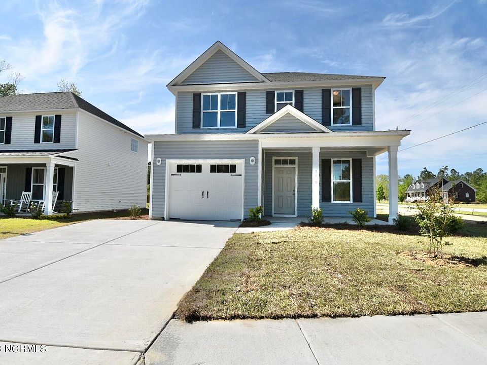 The charming 3 bedroom, 2.5 bathroom ''St. Augustine'' by Stevens Fine Homes offers an open floor plan, rear covered porch and a finished one-car garage, and is situated on a beautiful, treelined homesite measuring almost half of an acre! Currently under construction for a December, 2023 completion, the lovely kitchen features ''luna pearl'' granite countertops, soft-close shaker-style cabinetry in a timeless white finish accented with brushed nickel hardware, a lighted pantry, stainless steel Frigidaire appliances, Moen plumbing fixtures, and more. The bright dining area lends access to the rear covered patio with ceiling fan overlooking the peaceful, treelined back yard. Upstairs, you'll find a relaxing owner's suite with a trey ceiling, attached bath with a double vanity with quartz countertops and beautiful ''greyhound'' cabinetry, luxury vinyl plank flooring, a walk-in shower & large walk-in closet. Two secondary bedrooms, a well-appointed guest bath and a laundry closet complete the second floor. Designer finishes include nine-foot ceilings and luxury vinyl plank flooring throughout the first-floor, granite & quartz countertops in kitchen & baths, thoughtful trim details, exterior coach and flood lights, and more!