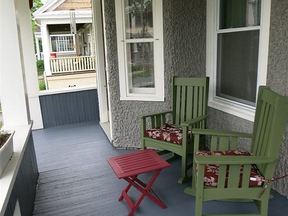 Original character and charm with modern updates in this elegant Colonial with Arts & Crafts details. Tile vestibule with leaded glass. Box beam ceilings and beautiful hardwood floors. Gas fireplace. Inviting wrap around front porch and a bonus 2nd floor sleeping porch! Newer kitchen with granite tile counters. The dining room opens to a spacious deck overlooking the fenced backyard. Extra storage and ample closets. All of this on a low traffic street only 6 blocks to the shops on upper Union Street!