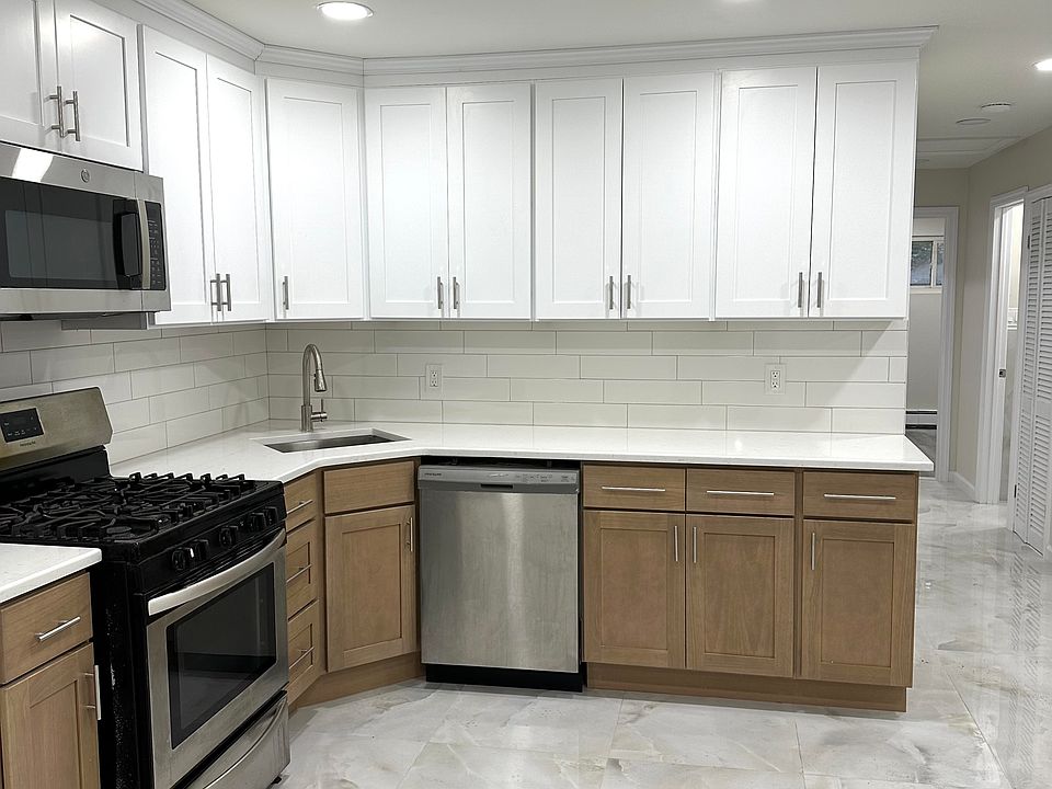 Newly Renovated. Large front deck. Lots of parking on a Large corner Lot. Beautiful Marble like flooring. New Kitchen. New Flooring. New Bathroom. New Fixtures. Fire place. Everything new. Large 2 Car garage for rent for an additional $300 monthly. Gas heat. Qualifications: A minimum proof of 2.5 Times the rent as take home income. Good credit. No evictions on record. Ready with month and half security deposit to sign lease.