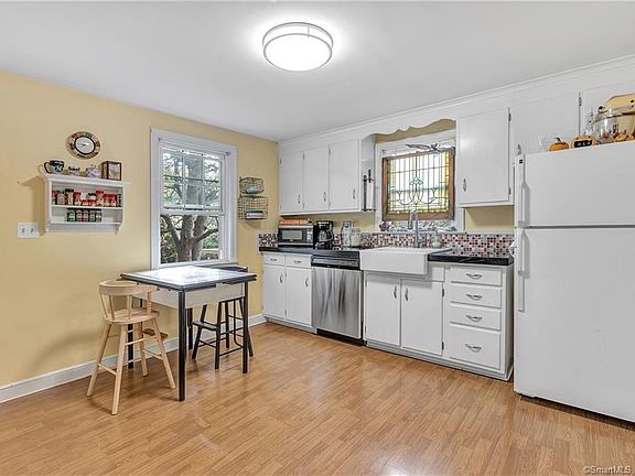 Charming Cape style home in a desirable commuter location with easy access to Paradise Green, shopping, restaurants, beach, highways and Metro North train station. This home features sun filled living room with bay window and fireplace. A seamless flow into formal dining room, eat in kitchen, and a first floor bedroom, (currently being used as a family room) adjacent is a full bathroom. The second floor is dormered and boasts two large bedrooms and a second full bath. There are newer windows throughout, vinyl siding, gas heat, and central ac. The private fenced in rear yard leads you to a two car detached garage. This is an ideal home for the first time homebuyer and/or downsizer. Be sure to put this on your list of homes to see.