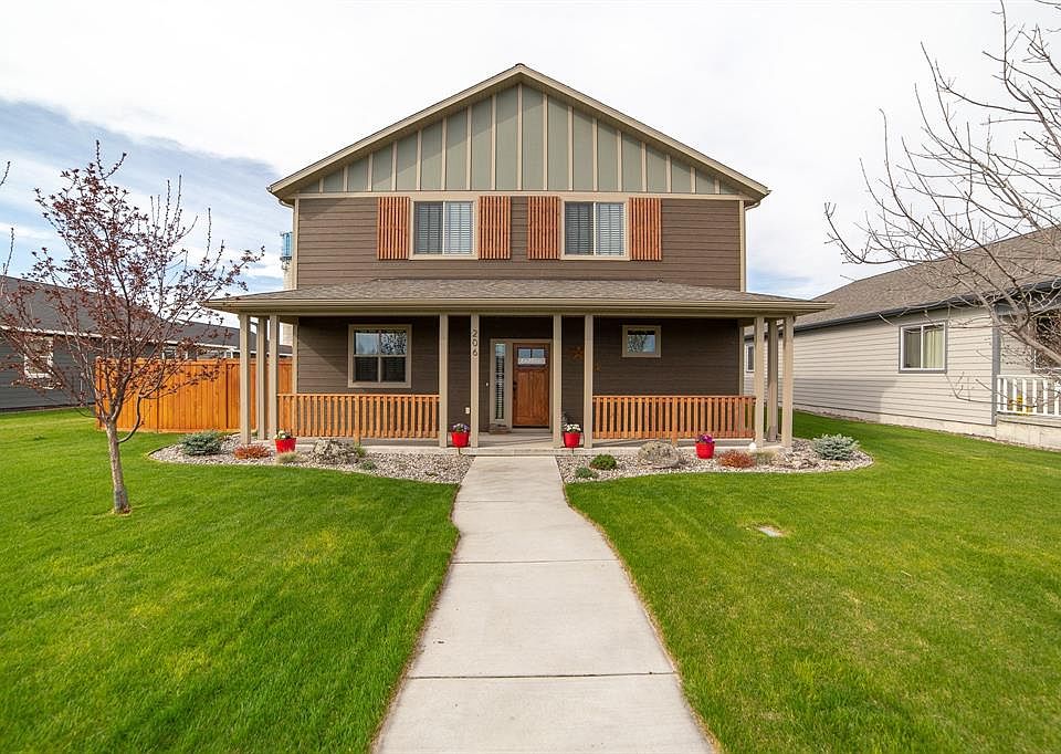 Amazing family home in the heart of Manhattan! Near parks and trails, this home has everything you need to plant Montana roots. Large front porch to sit on warm summer nights and take in the Bridger views. Main level master suite with three large extra bedrooms upstairs and a full bathroom. Third car garage bay has been transformed into a workout room but can easily be switched back. Partially fenced yard and a screened in back porch for your BBQ parties! Hardwood floors throughout the kitchen, dining room, and TV room. Call your Realtor for a showing today!