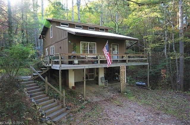 Mountain cabin charm, the right location and a fireplace. All the right ingredients and an attractive price on this one owner, never been offered for sale home in Brevard, NC. The master bedroom is on main level and upstairs is an open loft with half bath, lots of storage, no wasted space. Home has newer metal roofing, 487 sq. ft. of open decking with big eve overhangs so as to have a covered porch effect. Small creek on north side of property.