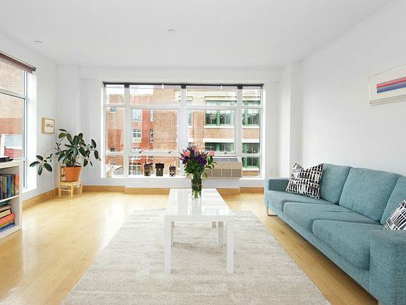 Streaming with sunlight and featuring city views, this strikingly renovated 2 bed, 2 bathroom condo with private outdoor space in a boutique building is vibrantly located just minutes to the best of bustling DUMBO and historic charm of Vinegar Hill! Beautifully curated, it's an ideal alternative to nearby new development at 1,297 square feet. The open airy living area is highlighted by a wall of windows that brings the outside in and provides the perfect vantage point for sunset watching over the Manhattan Bridge and downtown skyline. The sprawling space can easily accommodate a separate dining space, play area or home office. A thoughtfully updated cook's kitchen - fully renovated in 2018 - anchors the space and is well appointed with CitiQuartz countertops, Nemo tile herringbone backsplash, Viking stove, SubZero fridge, a built in wine fridge, and Fisher Paykel split dishwasher. The bedrooms are located at the opposite end of the home, ensuring maximum privacy. South-facing and awash in natural light, the primary bedroom is expansive and tranquil. It features two customized closets and opens to the large private balcony, ideal for unwinding. The stunning spa like en-suite bathroom has been completely gut renovated with Nemo tile, custom built vanity with abundant storage, separate shower, and soaking tub with Lucent Lightshop chandelier overhead. The spacious second bedroom also has a large south facing window and wall of custom built-in closets. Other appointments of this special home include abundant closet space throughout, an in-unit Bosch washer/dryer, central heating and air conditioning, wide-plank maple floors, and oversized floor-to-ceiling metal casement windows. Notably, the apartment also comes with an additional private storage space. Originally built in 2006, the pet friendly Vista on Vinegar Hill offers residents a fitness room, bike room, lounge, spacious courtyard and an 1800 sq ft roof deck with gas grill. 421A tax abatement is in place until 2023. Situated among the neighborhood's cobblestone streets it's nearby to institutions like Vinegar Hill House and Cafe Gitane as well as Dumbo's dynamic offerings: 85-acre Brooklyn Bridge Park; crowd favorite Jane's Carousel; noted performing arts space St. Ann's Warehouse; a wealth of restaurants, bars and boutiques; Empire Stores; and Time Out Market. The area is also bookended by the thriving creative, industrial, and tech hubs at the Brooklyn Navy Yard and Wegmans supermarket. Just one stop into Manhattan on the F train, nearby commuter ferry and A & C lines.