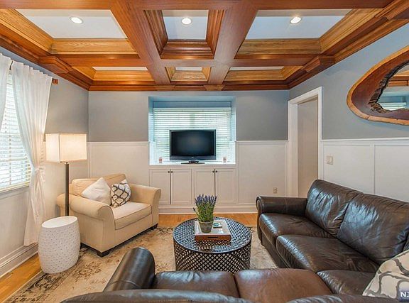 This elegant and immaculate 4 bedroom, 2 1/2 bath home blends exceptional craftsmanship in its stunning architectural features with warm inviting living spaces with a color scheme that is sure to please! The first floor features a bright and sunny fully updated kitchen with granite countertops and SS Bosch DW, Bosch dbl wall oven and a large breakfast area with full windows overlooking the private backyard. The room flow is perfect for entertaining with a Formal dining room off the kitchen that flows into the Den, both with 9 foot custom woodworked coffered ceilings. Also off the kitchen is a formal LR complete with a wood burning fireplace and powder room. Upstairs are 3 bedrooms sharing a large full bath and an expansive Master Bedroom suite with vaulted ceilings and ensuite Master bath. The 3rd floor is a large and brightly finished bonus area that can be used as a playroom or office. Additional special features include hardwood floors throughout, custom closets and moldings.