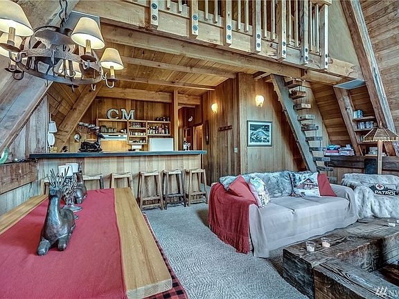 Rustic top tier Gold Hills vintage cabin situated below Pacific Crest Trail. Sweeping views of ski slopes, Summit House & valley floor from 5000ft elevation. 4 bedrms, 3 baths & loft. Vaulted window wall, massive metal fireplace, kitchen eating bar & dining area, pantry, decks & mudroom. Stout concrete foundation. Ski In/Out from top of Gold Hills Chair in Crystal's coveted mid-mountain village. Summer road access-winter access via chairlift & snowmobile. Unlimited Alpine adventures await!