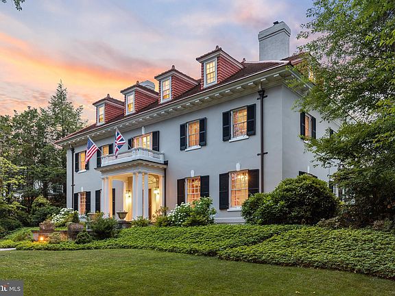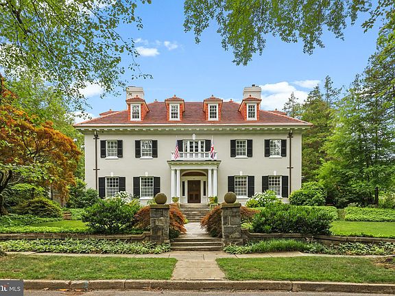 Exquisitely appointed and rich with history, this magnificent Colonial Revival, circa 1904 was originally custom built for former President of The B & O Railroad, Daniel Willard, and boasts 10,193 Square feet of unparalleled living space. With interiors Impeccably designed by Patrick Sutton, this magnificent home has five bedrooms, five full and two half baths, a two car detached garage, and is pristinely sited on the most desired block of Goodwood Gardens in the heart of coveted Roland Park. Soaring ceilings, detailed millwork, Mahogany doors, curved stairways, pocket and french doors, and multiple fireplaces are just some of the original architectural details found in the elegant interior that has been impeccably updated and features an enormous dream kitchen with chef grade Viking appliances, two massive islands, a sun-drenched breakfast room and adjacent laundry room and mudroom. Although expansive, the floor plan exudes warmth and has an easy flow from room to room beginning with a grand but welcoming foyer, an inviting living room with wood burning fireplace, a palatial dining room that is suitable to host a gathering of any size, an exceptional library, as well as a perfect for entertaining family room with a fireplace and multiple french door access to the outdoors. The two upper levels feature a convenient media/recreation room, four generously sized bedrooms as well as a sophisticated and stylish primary suite with two separate primary baths and dressing rooms with ample closets to suit your every need. Three wine cellars are found in the lower level, along with a game room, recreation rooms, and ample storage. The lavish exterior boasts a fully fenced rear lawn with meticulously maintained gardens, patio and wrap around porch. A truly exceptional home, unmatched by any other.