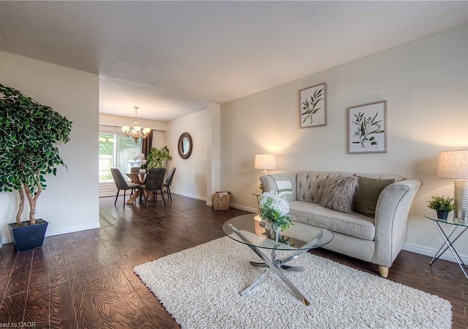 GREAT OPPORTUNITY — PRICED TO SELL!! Don't miss this rare find! A great starter home in a townhouse condo — at one of the best prices in the area! Being an end unit makes it more private, almost like living in a semidetached home. Perfect for families or as a multi-room rental, thanks to its flexible layout with 3+1 bedrooms and 2 full bathrooms. Ideal for commuters, just 8 minutes from 401 and only minutes from Conestoga College (Kitchener Campus). The kitchen feels bright and modern with plenty of natural light, stainless steel appliances, and granite countertops. Freshly painted throughout, this home also offers a spacious primary bedroom with walk-in closet. If your teenager spends extra time in the bathroom, no worries, there are two full bathrooms! The large, open rec room features big windows and brand new flooring, while the basement has one of the full bathroom, making it perfect for a mortgage helper or guest suite. The rec room can be used as bedroom. Enjoy outdoor living with a private backyard, ideal for BBQ gatherings. The area is quiet and there are no back neighbours. Come and see it for yourself — you'll love it!