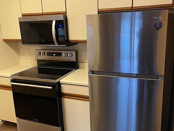Brand-new stainless steel appliances (refrigerator, range, microwave)