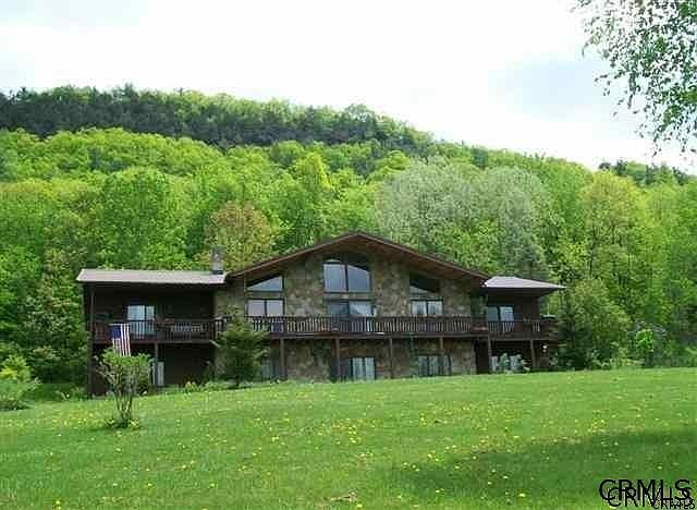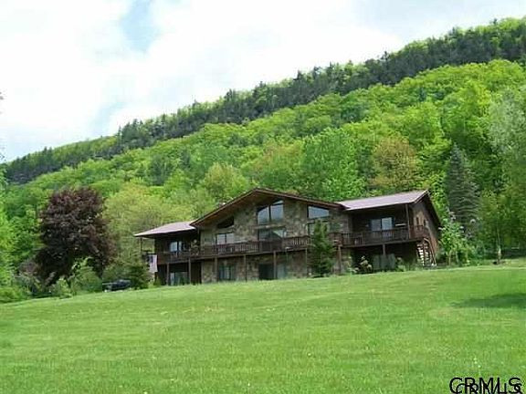 Rare opportunity to own a top quality, spacious, custom built contemporary home you would be proud to live in. Perfect for entertaining. Quiet setting on a dead end road, mountain views, pond, deck, landscaped, close to village. The stone front home has 2 massive fireplaces, lots of glass to enjoy views, large, open living room, dining room with wooden cathedral ceiling, sauna in master bath, bar & den on ground floor, gourmet kitchen with wine cupboard, & ample lighting. All amenities, call for details.