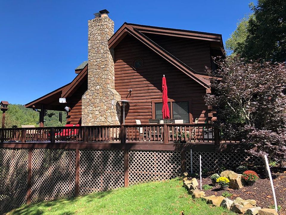 This immaculately maintained log home offers peaceful ridgetop living with spectacular views less than 10 minutes from Burnsville. This house is on the popular west side of Burnsville and has excellent access on paved roads. The house has 3 finished levels including a fully finished basement currently used as a short term rental. The basement has its own private entrance and would make an excellent mother-in-law suite as well. The kitchen and all 3 bathrooms have been renovated within the last year. The kitchen in the basement was completed this year. This house has a new hot tub in front off of the large wrap around deck. New metal railings have been added to the stairs on the main floor. The house has recently had all new windows and Anderson doors installed. There is a solar-powered metal security gate on the driveway at Hamlet Drive. The pristine waters of Cane River and the Yancey County Recreation Park are a few minutes walk away. See this beautiful home and you'll fall in love.