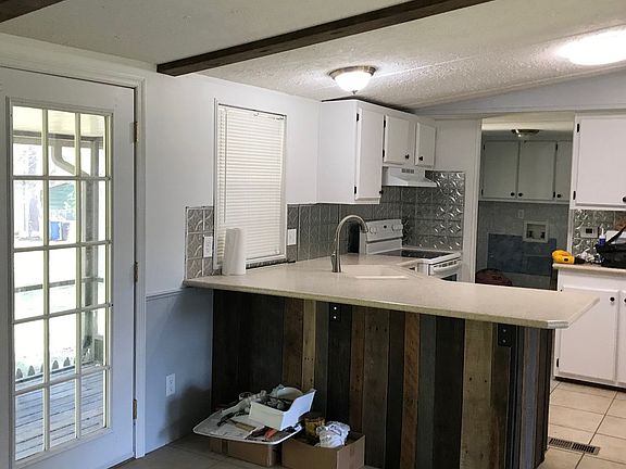 This home has been completely renovated; new hardy siding; metal roof; central heat & air; corian counter tops; new interior paint; new tile work on the floors and walls of both bathrooms; split floor plan; great room has vaulted ceilings with exposed beams and fireplace; nice screened back porch and storage building with workshop. Must see to appreciate this one!