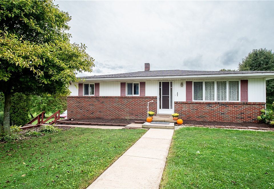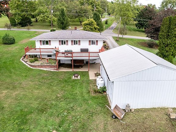 Welcome to a lovely 3 bedroom ranch home on an acre of land! Large living room has brand new carpeting. Eat-in kitchen comes fully equipped, breakfast bar with stools, newer flooring, pantry, tile back splash and access to large wraparound deck and side yard. Three bedrooms with hardwoods floors and nice closet space. Recently updated full bath with vanity, shower and huge double linen closet. Basement is so versatile with gameroom (brand new carpeting), full bath, separate laundry room, storage room, 2 exit doors and mudroom/office/gym area. Garage lovers will appreciate the two 9x9 doors, pit, plus side door on this enormous detached garage. Entertaining outside is so easy.. this awesome yard boosts plenty of room for a firepit, swing set, corn hole and so much more! Plenty of off-street parking for your guests. Freshly painted plaster walls throughout. 200 amp service panel. Home warranty included. Come and see all this house has to offer!