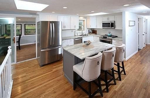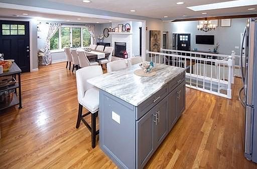 FALL IN LOVE with the serenity of this beautiful sprawling ranch which is set back from the road on nearly 2 acres. All your needs for family entertainment including Flexible floor plan with many possibilities. Features a new kitchen with granite counters & SS appliances that opens to fireplace dining/living room. Enjoy your morning coffee in the sunroom which is laced with windows overlooking the private back yard. Living room has cathedral ceiling skylights and fireplace. Master suite yields beautiful bath with double sinks and slider to private deck; oversized finished lower level with 2 rooms for guests or extended family, brand new roof and 2 car garage. Can close quickly!