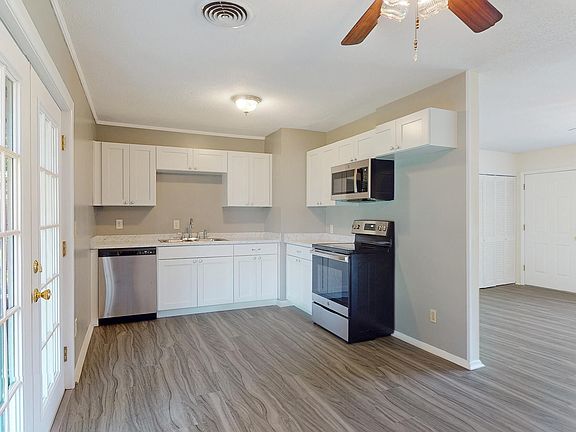 Beautifully renovated home situated on a corner lot with a huge front yard!! Fenced in back yard!! Brand new LVP flooring throughout. Walk into the living room and there is a large bay window to let in plenty of natural lighting. Kitchen has been totally renovated with beautiful cabinets and brand new appliances. The garage has been closed in and would make a wonderful den, plenty of room for a pool table!! The primary bedroom features a half bath and there is a full bath in the hallway. Two other nice sized bedrooms.