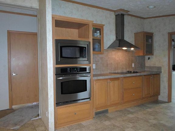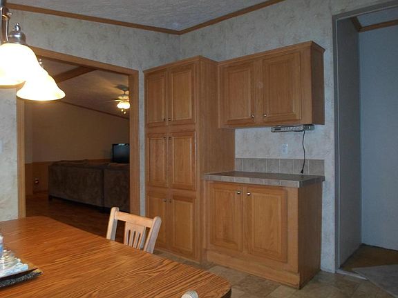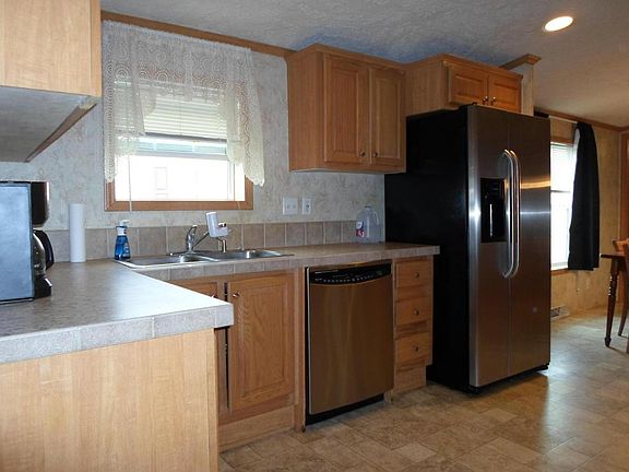 Price reduced on this 2007 Redman doublewide with wonderful kitchen w/dining area. Very spacious living room w/cathedral ceiling, wood burning fireplace & wood laminate flooring. Master bath has soaking tub & a gas fireplace. The bedrooms need carpet/flooring & this is reflected in the price. Quick settlement possible. Lot rent is $422/month & incl water, sewer & trash. No electric, bring flashlight