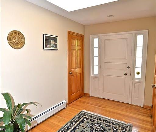 Immaculate updated ranch that is light & bright. Nice foyer with vaulted ceilings and skylights. Spacious Living room with a fireplace & bay window. Formal dining room also with a bay window. Beautifully renovated kitchen with granite counters, stainless steel appliances, skylights & island with breakfast bar & stools opens to the sun filled 3 season porch with vaulted ceilings and sliders to the deck. Updated powder room. 3 good size bedrooms including the master with a full bath/newer cabinets & corian double sinks. The hall bath with an updated vanity completes the main level. The walk out lower level family room has hardwood floors and a gas fireplace. The oversized garage along wth a furnace that is 8 years old, Hot water heater 3 years old, Transfer for a generator in place plus a security system that is not currently being used are a few more features of this great home.