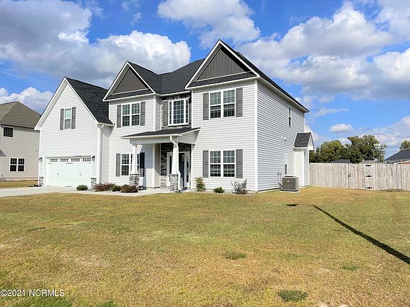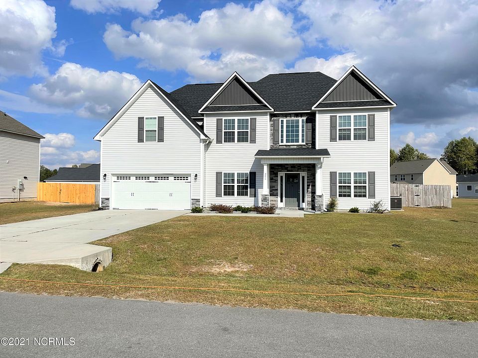 Gorgeous 4 bedroom, 3 1/2 bath home located in Pikeville. Beautiful 2 story foyer that opens into the formal dining with coffered ceiling. Flex room that can be an office/study or sitting room. The living room has an electric fireplace and is open to the breakfast area and large kitchen. Also downstairs is a 1/2 bath. Upstairs are four bedrooms including a large owner's suite that has a separate tub and walk-in shower, water closet, and large walk-in closet. Also upstairs is another room that has its own bathroom and can be used as an in-law suite. There are also two additional bedrooms and a full bath. The backyard has a privacy fence and a covered patio.