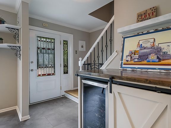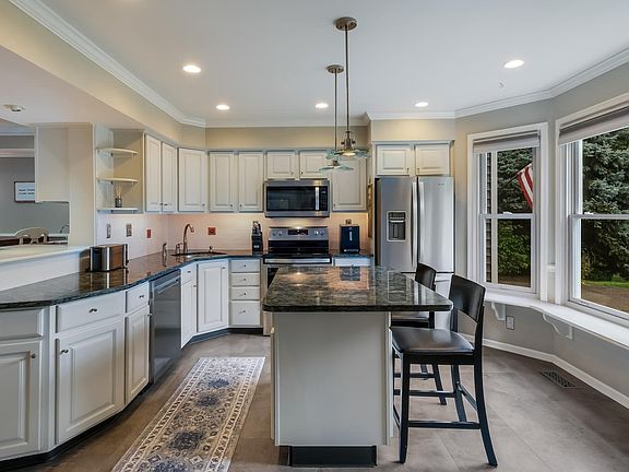 - Ceiling Fan(s), Chair Railings, Combination Dining/Living, Crown Molding, Dining Area, Family Room Off Kitchen, Open Floorplan, Kitchen Island, Recessed Lighting, Sound System, Bar