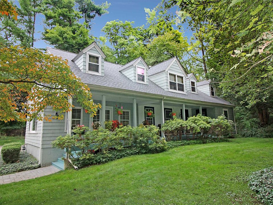 This expansive turn of the century Cape Cod home is situated on a corner lot property with classic farm style wood fence. Lush and mature landscaping add to the unique character and privacy of this home. Go through the covered front porch and Dutch style door into a welcoming foyer. This home offers the charm of yesteryear while providing all of today's amenities and updates. From the beautiful cherry wood kitchen, to the Viking six burner stove and cook-top, granite counters and center island, farm sink, warming drawer, to the pull-out shelves and drawer, this kitchen has all that you need and desire. Hard wood floors and French doors throughout the house. Formal dining room just off the kitchen with a classic corner China cabinet, and French doors leading to the front porch, back deck, and patio. The formal living room with its beamed ceiling is a delight for gathering near the gas fireplace and built-in bookshelves. Pass through a set of double French doors into a spacious family room with walls of windows to let the sun shine in. A powder room, mud room and laundry room complete the first floor. Head upstairs to a fabulous master bedroom suite with walk-in closets, luxurious spa bath with clawed tub, double vanity, and a walk-in shower. Enjoy the view of your private gardens through the large Palladian window. A second room has a large padded window seat and surrounded with bookshelves. Two additional bedrooms and two full updated hall baths complete the scene. Roof, boiler, electric, and AC coil have all been updated.