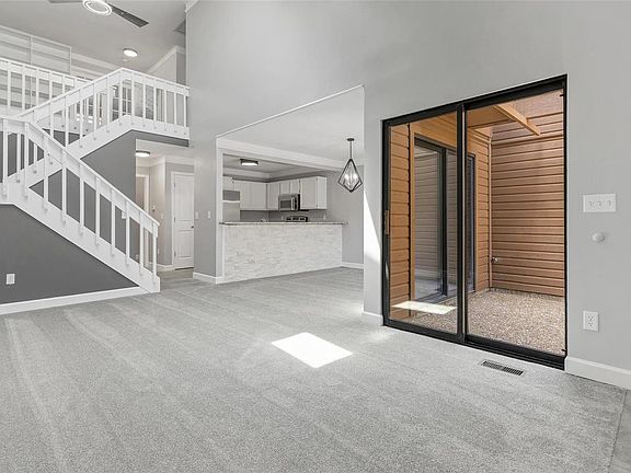 Beautifully renovated 2 bed, 2.5 bath, 1.5 story condo in extremely sought after Chapter One. Grounds are gorgeous, mature trees, meticulously maintained. Updates completed June 2023, ALL flooring, lighting, paint, faucets, sinks, vanity tops, toilets, interior doors, air conditioner, SS frig & stove/range, gorgeous granite counters in kitchen, beautiful glass tile in new shower & soaking tub surround. Main flr features 1.5 story new stacked stone fireplace in great room, dining area, kitchen w/pantry, laundry room & 2 car oversized garage. Stacked stone is also featured on front of breakfast bar that easily seats 4/5 people, in addition to the dining area, adjacent to large patio. Upper level boasts loft area w/builtin bookcases, large 2nd bedroom & full bath. The star here is the huge master suite, w/bonus room full of windows, perfect office/sitting room, & beautifully updated master bath w/huge soaking tub. Condo fee covers too much to include here, see pg 5 of Seller's Disclosure. Location: Ground Level