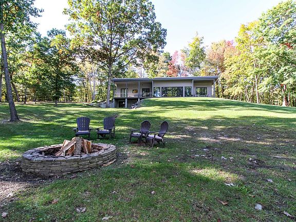 This Rhinebeck lake front modern home is sited on a spectacular private 3.35 acre lot on Long Pond Lake. The property has landscaped gardens and mature trees with a large front lawn that cascades down to lake which is perfect for a dock, boating or swimming. Enjoy the sunrises on the lake and 4 seasons from every room in this home. The beautifully simple house was designed by architect Barry Price to maximizes the environmentally friendly foot print and minimal maintenance. The main floor has an open floor plan (Kit., LR & DR), 12 foot ceilings, 8 foot windows with 3 bedrooms (master BR suite) that all have views of lake with glass doors that lead to outside decks, 2.5 bathrooms, laundry & sitting decks. The lower level is a large open room with high ceilings, a roughed in bathroom, polished concrete floor and large glass doors leading to the yard with views of the lake. The interior features all custom made cabinets, concrete bathroom countertops, kitchen Stainless Steel countertops, Chef quality kitchen with Stainless Steel appliances and much more. The exterior includes a large carport, a long private driveway, perennial gardens, stone walls & a stone fire pit. The construction is top quality and energy efficient with a passive solar design, triple glazed windows, metal roof, radiant heat in the concrete floors (main floor & lower level), Mitsubishi ductless CA, Super Store indirect hot water system, Panasonic heat/air recovery system, foam insulated, Hardie Board siding & automatic generator system. Located minutes from Rhinebeck village, Bard College and a short walk to neighboring Omega Institute. A must see to fully appreciate this perfectly sited, light filled, beautifully designed and well built home on this amazing lake property. Please see virtual 3D tour link.