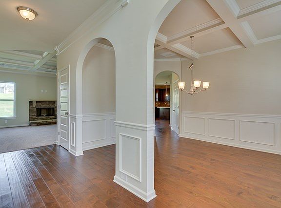 The Ryan floor plan offers 5 bedrooms, 4 full baths, & a media/playroom. Kitchen includes an island, granite counters, 42 cabinets, recessed & pendant lighting, tile backsplash, and a gas cooktop. On the 1st floor hardwood flooring will be located in the foyer, dining room, kitchen & breakfast area. Outside features a fully landscaped yard with irrigation in the front and back, gutters for whole house, and a 10x12 rear covered porch.