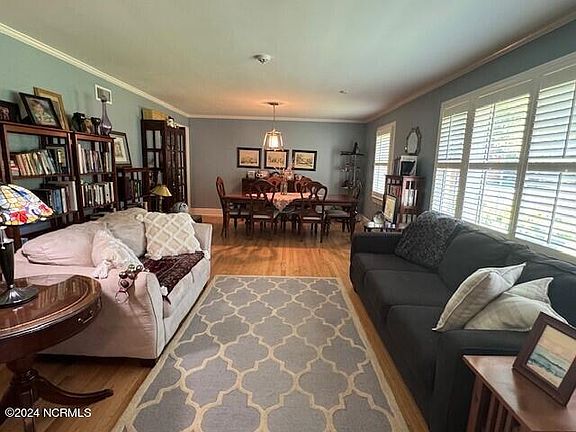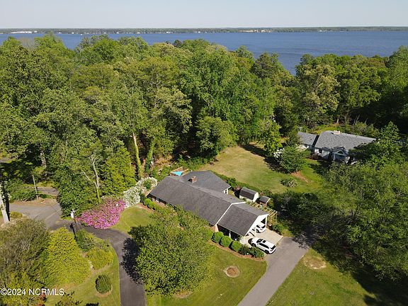 This 3 bedroom, 2 bath brick ranch home sits of a quiet street with seasonal views of the beautiful Chowan River. Located just 20 minutes from historic Edenton, the home had a total renovation is 2018 and is full of character and charm. The circular driveway brings you the front door. The foyer brings you into the spacious living/dining room. There you will find a wall of windows with plantation shutters, a nice sized living area and plenty of room for a large dining room table. The kitchen would please any cook. Custom shaker cabinetry, including a large center island with black granite counter tops provide abundant work area and storage. The gas range, side by side refrigerator, dishwasher and disposal are included, along with a nearby pantry. The nearby custom beverage bar has glass front cabinetry and a wine refrigerator. The adjacent den in centered around a fireplace with gas logs which is flanked by custom built bookcases and cabinets. A stunning all season sunroom spans the width of the back of the house and has vaulted ceilings, terrrazzo floors and windows on three sides. There are three nice sized bedrooms, all with nice sized closets. There is a full bath located near these bedrooms with a soaking tub and shiplap accents. A second full bath is conveniently located near the utility room. The utility room has custom cabinetry and includes the washer and dryer. All of the vinyl fold out windows have either custom plantation shutters or custom vinyl blinds. Out back, there is a large deck with a pergola that faces that Chowan River. There is a detached storage building, a private well pump house and a 2 car carport. The home has county water, septic tank as well as a private well and a whole house generator.