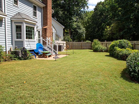 Welcome to this adorable home in Cary, NC, nestled on a quiet cul-de-sac. This charming residence features a wrap-around porch, perfect for relaxing or enjoying the neighborhood. The deep garage provides convenient parking/additional storage, and the fenced yard offers space for outdoor activities. Inside, you'll find a spacious living room, walk-up attic, a bonus room that could easily serve as a fourth bedroom), as well as a large walk-in storage area. Recent improvements include a new HVAC system, epoxy-coated garage floor, upgraded crawlspace, and new windows, Trex back porch, and new dishwasher/oven/microwave ensuring comfort and peace of mind. Location couldn't be better—near Cary Parkway and Lake Pine, with easy access to Trader Joe's, Costco and US 1. The home is part of the Kildaire Farm Planned Urban Development, offering miles of trails and a community lake including optional memberships for access to pool, racquetball, and tennis courts. Refrigerator and detached shed convey. Don't miss the opportunity to own this wonderful home in a prime Cary location!