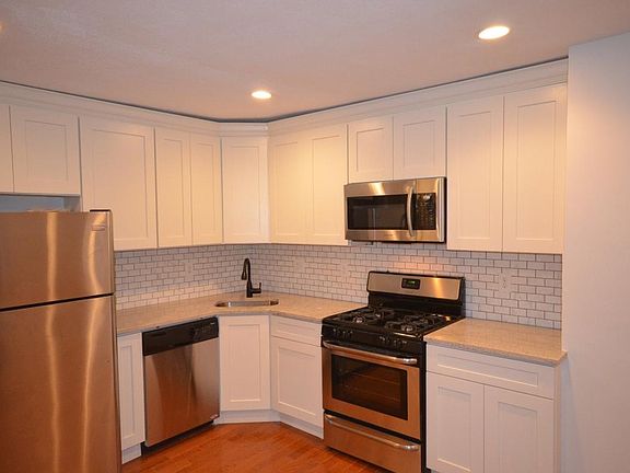 new kitchen with stainless steel appliances, granite counter tops, back splash and tiled floor, new bathroom, hardwood floors and new paint throughout.